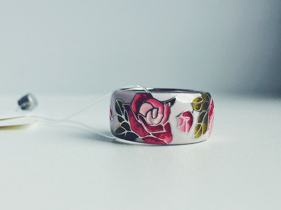 Кольцо из золочёного серебра с эмалью с жёлтыми фианитами